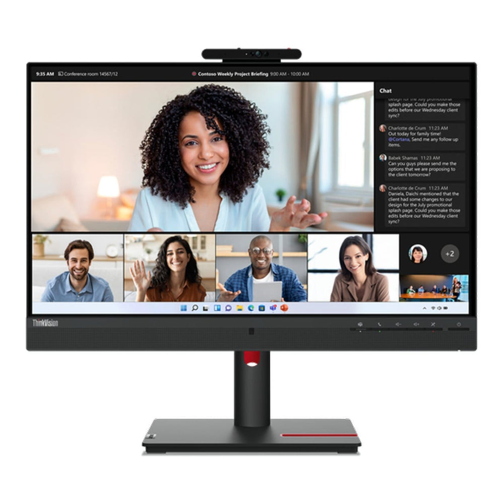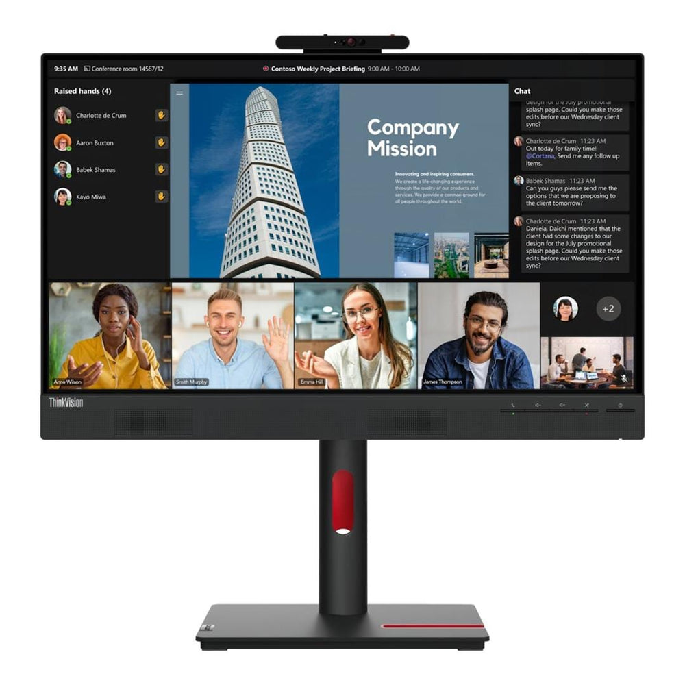 The 5MP camera offers a clear image during all your video meetings, while dual noise-canceling microphones and VoIP function ensure crystal-clear sound! Built-in dual 5W speakers deliver clear stereo sound so you won't miss a word of what's being said in any meeting. Accessing meetings has never been easier with the dedicated Teams button on the ThinkVision T24mv-30 monitor.