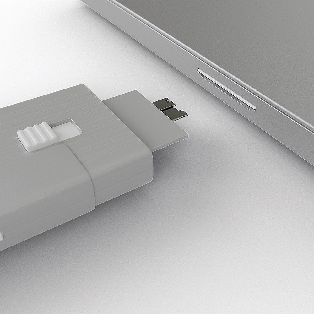 The SD Port Blocker is made up of a combined 'key' and 'lock' assembly which plugs into the SD Card. To use, simply plug the 'keylock' into the card slot and release the latch - the lock remains in place! Plug the key back into the lock to remove.