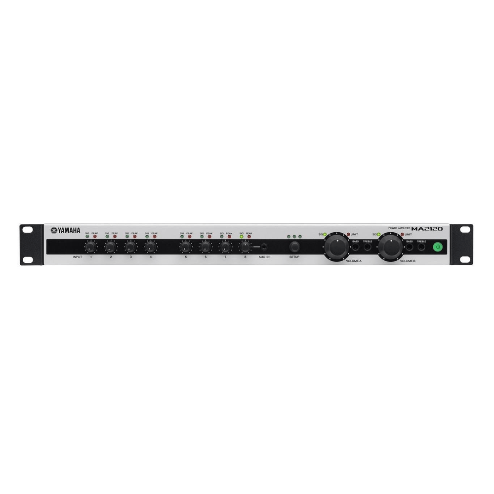 Yamaha’s MA2120 is a 2-channel, 120-watt-per-channel power amp for everyday playback and microphone use. Its energy-efficient class-D amplifier provides up to 120 watts of power to six microphone/line inputs or one of two stereo inputs. It has built-in DSP functions (feedback suppressor, priority ducker, leveler, reverb, echo, and compressor) and even provides dual volume control to help provide a clear audio output. Best of all, the MA2120 comes packed in a convenient 1U rack-size metal housing, enabling easy and reliable integration into any setup.