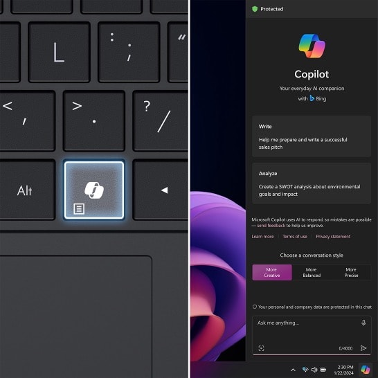 Microsoft Copilot with commercial data protection is your AI assistant at work. Supercharge your productivity and achieve more with less time and effort using Copilot. Experience your everyday AI companion now with the dedicated Copilot key. Just one click for endless exploration.