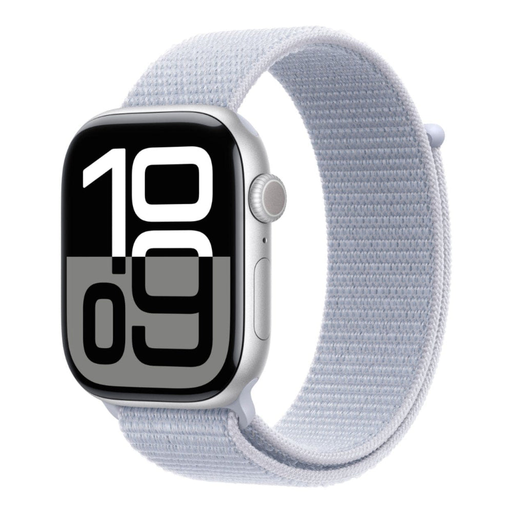 Product: Apple Watch Series 10 GPS + Cellular 46mm Silver Aluminium Case with Blue Cloud Sport Loop