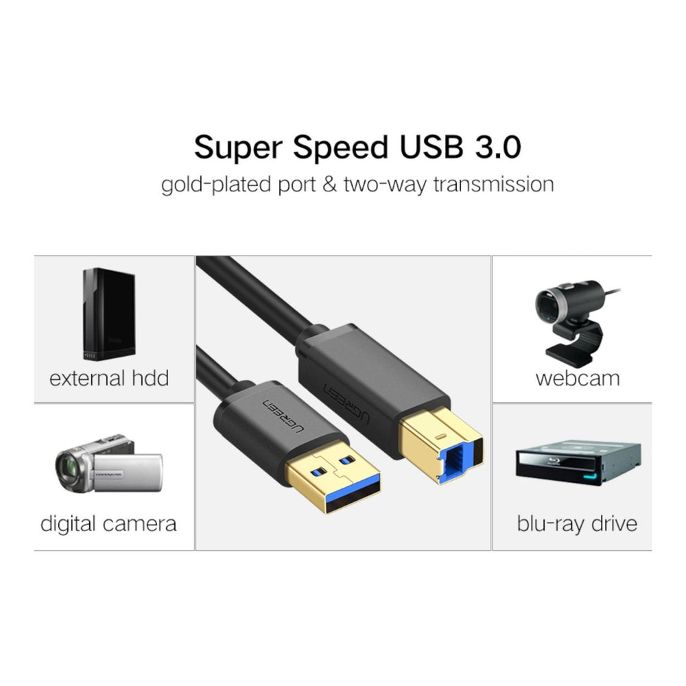 - Ugreen US210 USB-A Printer Cable 2M – Black x1