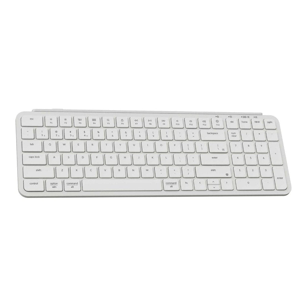 The 800mAh rechargeable Li-polymer battery delivers up to 300 hours of continuous use (backlit off) and charges fully in just 2.5 hours. Its 3.2° typing angle adds ergonomic comfort for extended typing sessions.