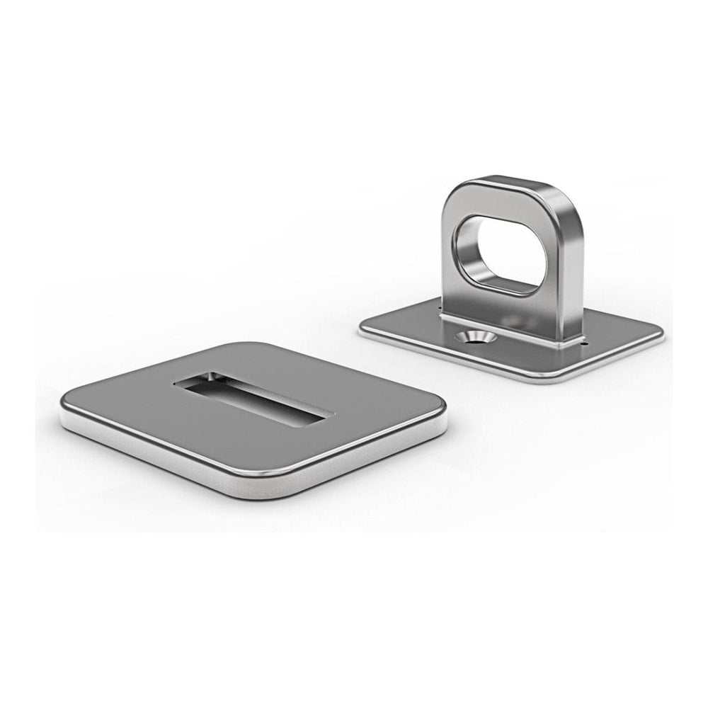 Anchoring Point for Maclocks Security Cable Locks. This stainless-steel anchoring unit features a ringed design, providing a secure point for tethering cable locks when a stationary object is not available. The anchor point can also be fastened using screws.