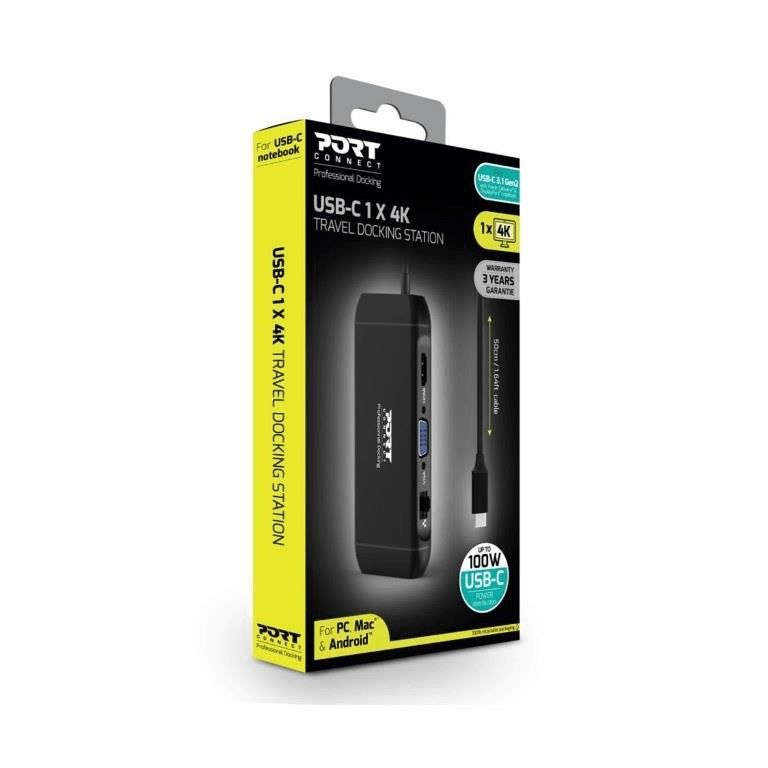 The Port Designs USB-C Travel Docking Station 901913 is a versatile and compact docking solution designed for users on-the-go. This docking station allows you to connect multiple peripherals and devices to your laptop or tablet through a single USB-C port, providing an all-in-one solution for your mobile computing needs.