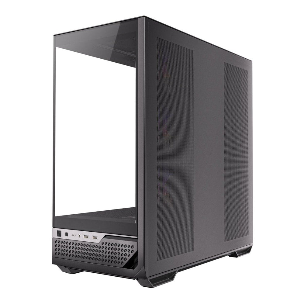 The Antec C7 ARGB ATX Mid Tower Gaming Chassis is a futuristic and functional case designed for gamers and PC builders who demand exceptional airflow and versatility. Its sci-fi inspired design features a stunning 270° panoramic tempered glass view, showcasing your build in style. With support for up to 10 fans, large vents around the lower chamber, and fine mesh panels on the top and sides, the chassis is engineered for superior airflow. The vertical cooling options and multi-directional air intake ensure optimal heat dissipation, making it ideal for high-performance setups. The chassis also supports simultaneous installation of 360mm radiators on the top and side, with accommodations for thick radiators without interfering with GPUs.