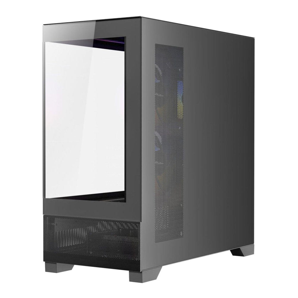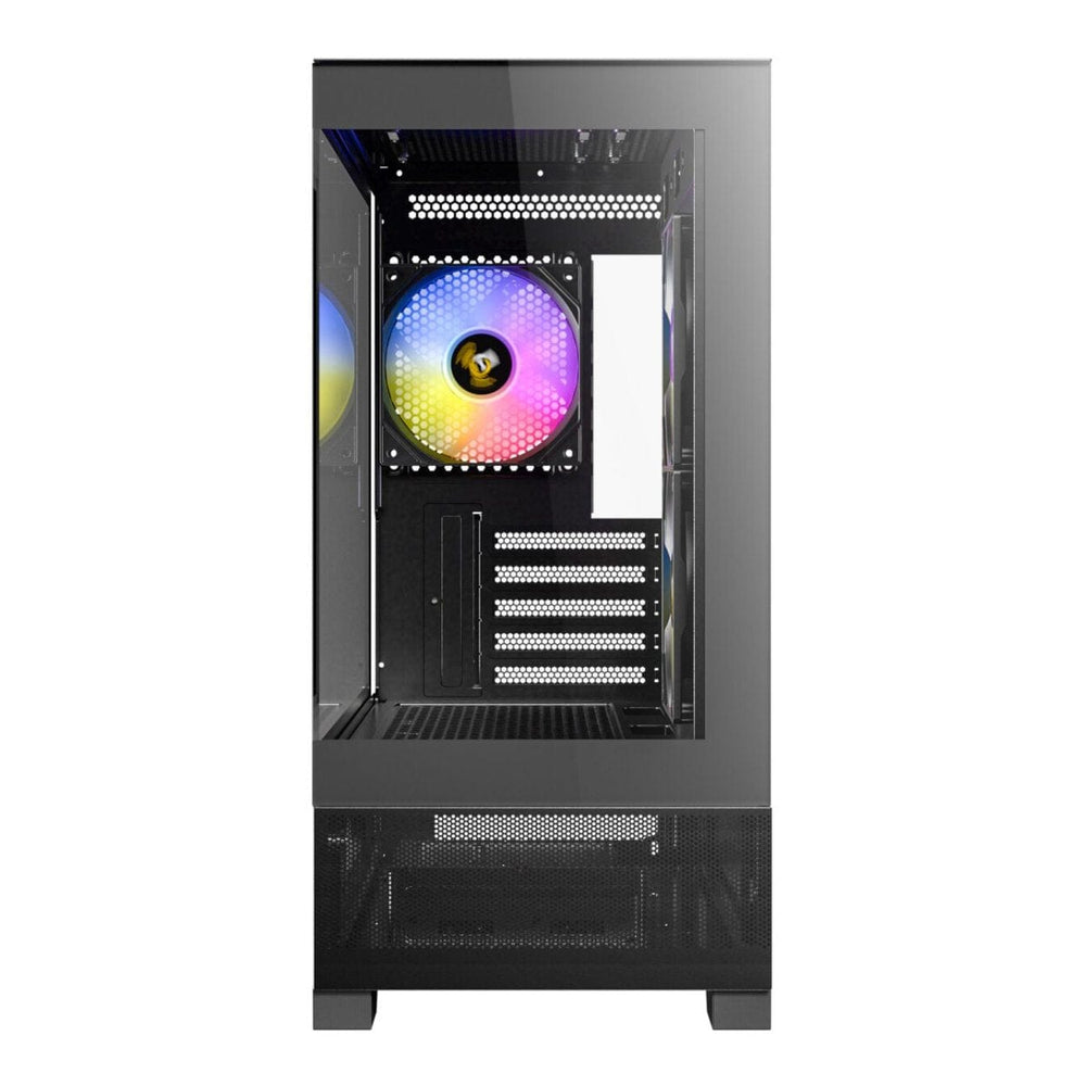 The Antec CX500M ARGB Gaming Chassis is the ultimate solution for gamers and PC builders looking for performance and aesthetics. This mid-tower case combines style and functionality with a sleek, full-view tempered glass design that allows a 270° panoramic view of your internal components. With its vertical airflow system and support for up to 9 fans, it ensures that your system remains cool even during the most intense gaming sessions. The three pre-installed 120mm ARGB fans provide excellent airflow while adding vibrant lighting to your setup, enhancing the visual appeal of your rig.