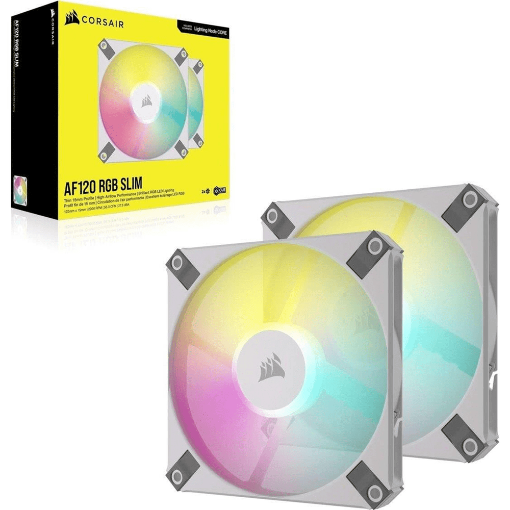 CORSAIR AF120 RGB SLIM 120mm PWM Fluid Dynamic Bearing Fans are 15mm thin to fit nearly any small-form-factor or Mini-ITX case, for spectacular airflow and RGB lighting while requiring minimal space.