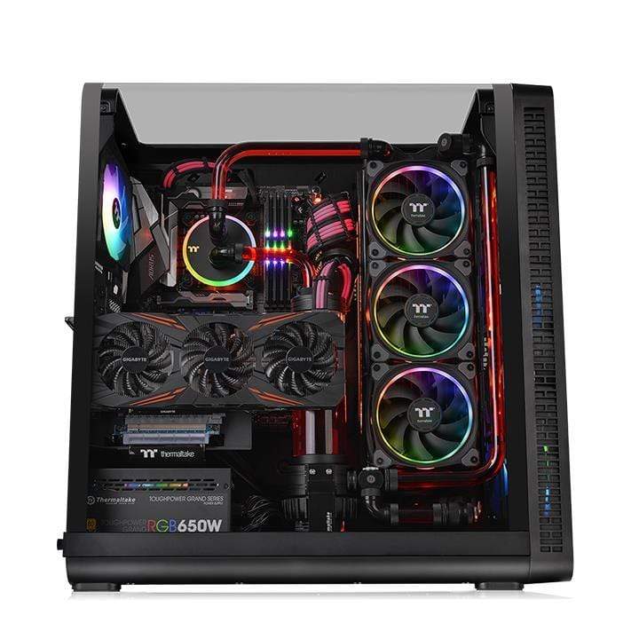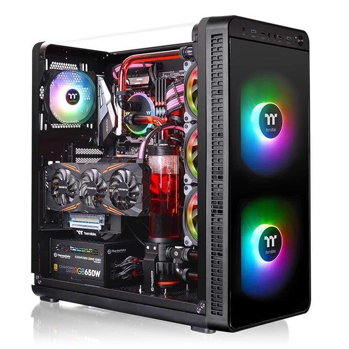 Thermaltake View 37 ARGB Edition mid-tower chassis involves a gull-wing window panel for a view from more than just one angle. Features to built-in two 200mm 5V ARGB LED front fans and one 120mm 5V ARGB LED rear fan which are addressable to deliver 16.8 million-color RGB illumination and unparalleled ventilation. This model comes ready to sync with RGB capable motherboards from Asus, Gigabyte, MSI and AsRock. The View 37 ARGB is built for our top-tier cooling and lighting hardware, supporting custom liquid cooling loops as well as vertical GPU layouts and RGB lighting. Build your ultimate show-piece with the new View 37 ARGB.