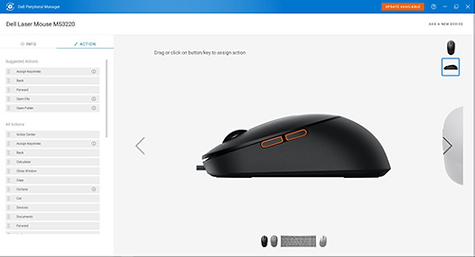 The Dell Peripheral Manager allows you to conveniently customize and manage your keyboards and mice. For the Dell Laser Wired Mouse, you can program shortcuts, get connectivity status and the latest firmware updates easily.