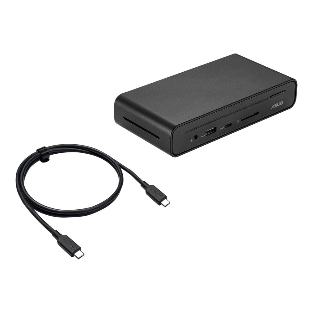 ASUS Triple Display USB-C Dock Duo DC301 Duo is a sleek, compact one-stop device that streamlines laptop connectivity. Power your laptop through a single cable, connect to your network and peripherals, and multitask with up to four monitors1 — including a laptop monitor and three external monitors. It also has an integrated SD card reader for a diverse array of business scenarios. Simply put, ASUS Triple Display USB-C Dock Duo DC301 Duo keeps your desk neat, tidy and organized while setting you up for work in the blink of an eye.