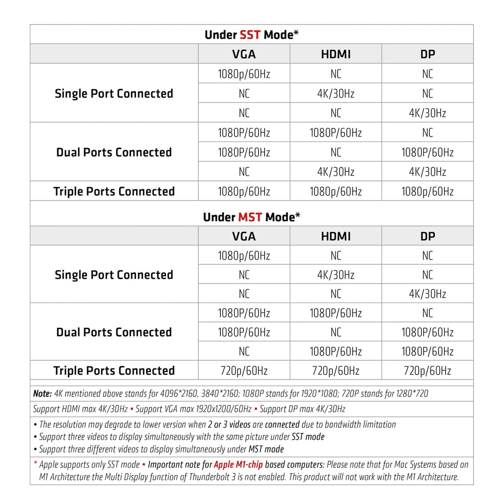 USB Type C 3.2 Gen1 Triple Display Dynamic PD Charging Dock CSV-1564W100 - The Club-3D USB 3.2 Gen1 C Triple Display Dynamic PD Charging Dock is an integrated solution combining Video, Data, Power, Ethernet and Audio especially for frequent travellers. The Three different Video ports(HDMI™, DisplayPort™, VGA) allow you to enjoy 3 different images or videos on 3 different displays simultaneously under MST mode. The USB Type A ports and USB Type C data port allow you to connect multiple USB devices to the host. The USB Type C charging port allows you to provide power for this Dock and can charge the host PC at the same time by connecting a PD power Adapter, no need to carry your Notebooks Power Supply. So in general the user is travelling lighter. The Micro SD and SD/MMC ports allow you to read information in the memory card onto the host. The 3.5mm audio port allows enjoying music of the host via a headset. Besides, with the Gigabit Ethernet port, you can enjoy high speed Ethernet on the host. It supports all DP Alt mode supported hosts. (PC, Laptop, Mobile phone, etc.) Dynamic Current Detection and Power Distribution, the product no longer intercepts the fixed power from the external PD Power Supply, but intercepts it according to the actual power consumed by itself, so that the PC can be dynamically charged more power. For Video Signal the source device needs to support DisplayPort Alt Mode