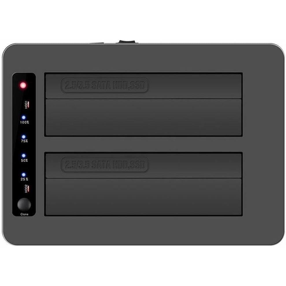 The Maiwo K3082 docking station supports all kinds of 2.5/3.5" SATAI/II/III HDD/SSD up to 14TB and supports SATAIII 6Gbps. With cloning function 1:1 (also without PC) Power cable and USB A cable included. The Maiwo K3082 USB 3.1 SATA HDD Docking Station allows you to connect two 2.5" or 3.5" SATA hard drive to your computer via USB port. It is a powerful product for data transfer, backup and cloning. With Superspeed USB 3.1, it offers a data transfer speed up to 5Gbps. It is ten times faster than the 480 Mbps USB 2.0 speed. The clone function allows for clone data safely and optimally. The LED indicator shows the cloning process 25%, 50%, 75% and 100%. Supplied power adapter delivers stable power for a safer HDD function.