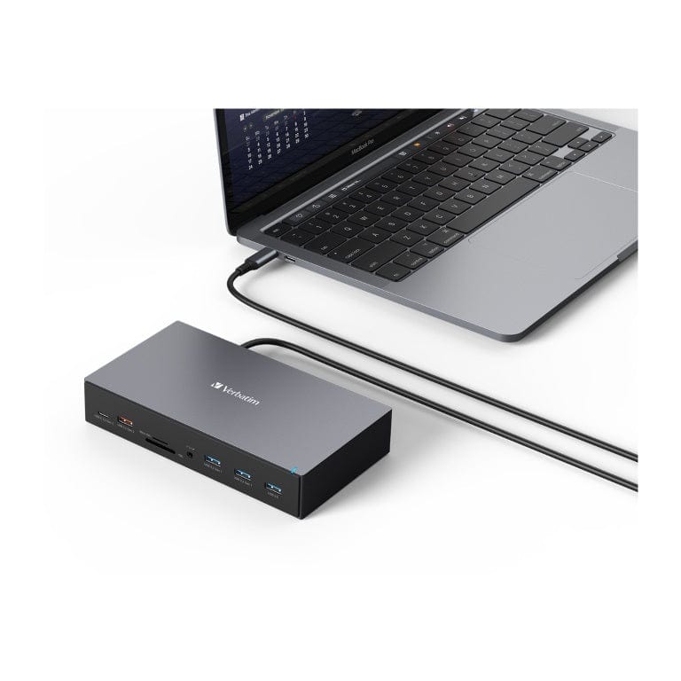 Unlock your creativity with the Verbatim 17-Port Docking Station. This versatile hub streamlines device management, accommodates a wide range of peripherals, and boosts productivity, making it the perfect solution for users in search of a comprehensive and efficient docking experience for their laptops or workstations. Particularly suited for graphics-intensive or data-heavy tasks.