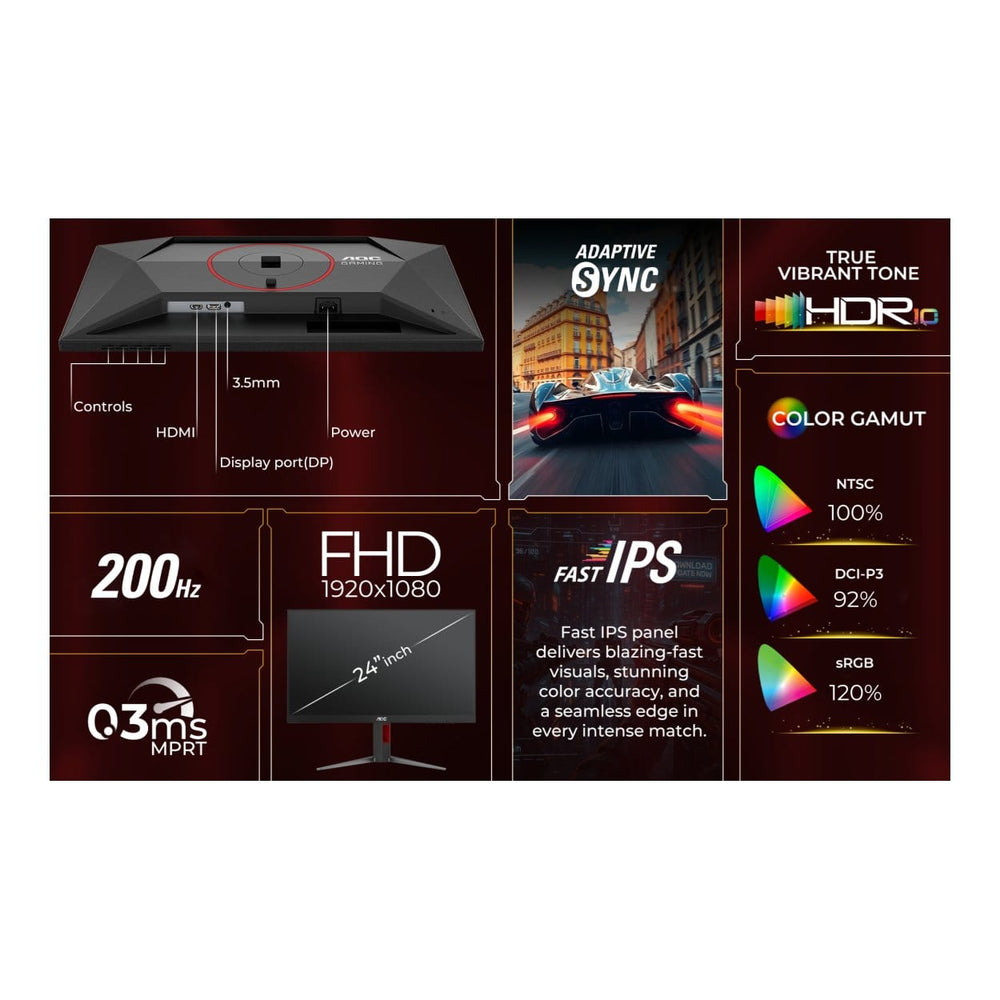 Only for the true valiant! This AOC 27G4H gaming monitor is made with a fast IPS panel, equipped with Adaptive Sync technology, guaranteeing you unbeatable gaming experience with its true 0.3ms MPRT response time and 200 Hz refresh rate. The HDR10 feature captivates visual quality and raises your gaming performance to the next level! Enjoy an ultra-smooth gaming with this AOC gaming monitor to ensure you're always prepped to win!