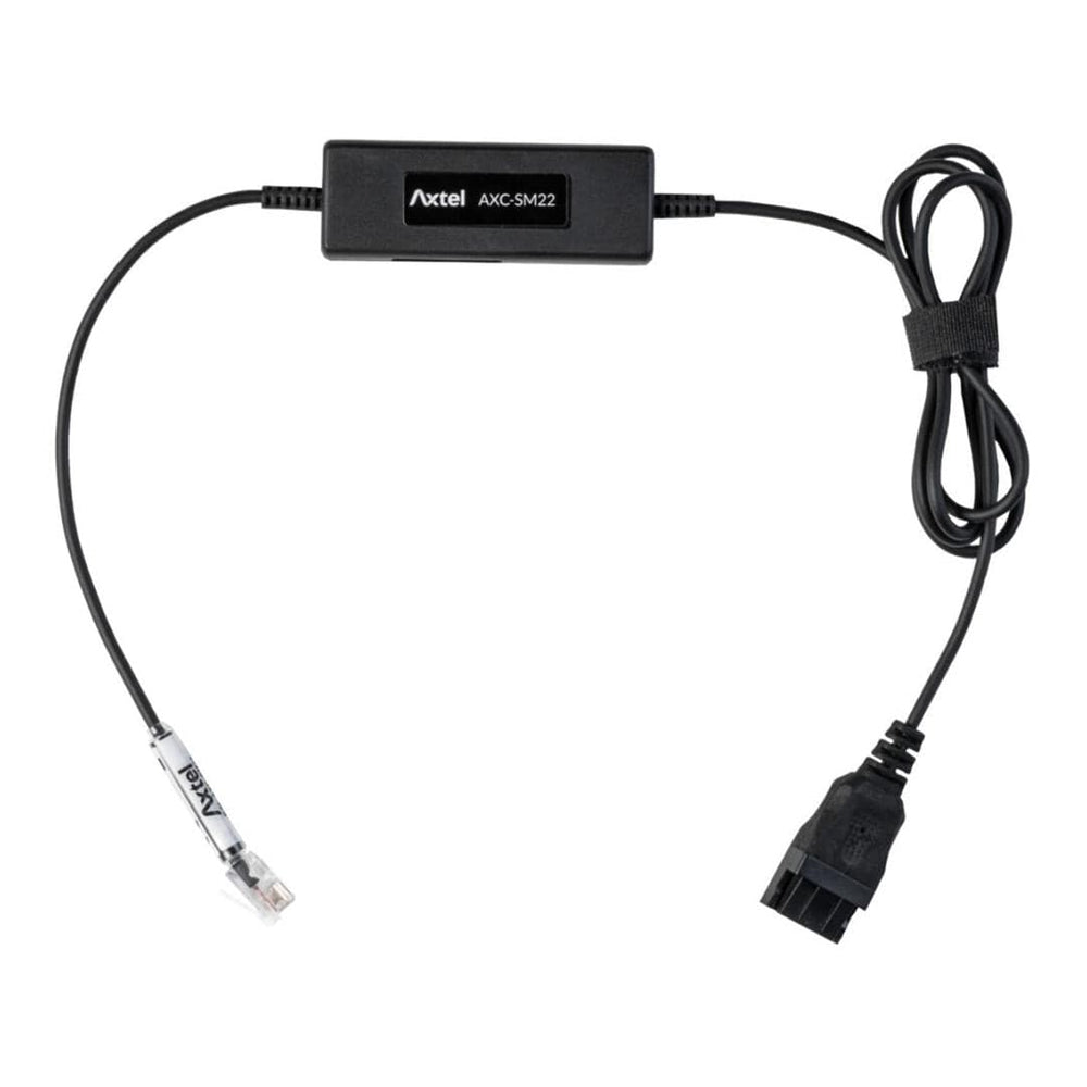 The Axtel SM22 QD/RJ Universal Cord is a versatile straight cable designed for broad compatibility with office desk phones using an RJ9 port. Equipped with an 8-position selector switch, it allows easy pairing with a wide range of telephone models. Positions 6, 7 and 8 include a built-in microphone amplifier to ensure optimal audio performance where additional mic gain is required. Ideal for call centers, offices and professional communication setups.
