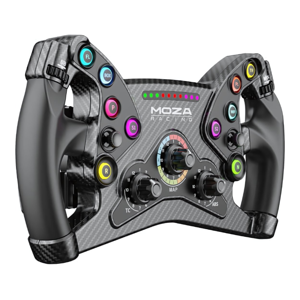 The MOZA KS offers 70 fully programmable input signals for all driving needs. It features thumb and rotary encoders for faster on-the-fly car adjustments, including brake bias, traction control, engine maps, ABS, and more. The two joysticks enable full menu navigation, keeping your hands on the wheel and eyes on the road.