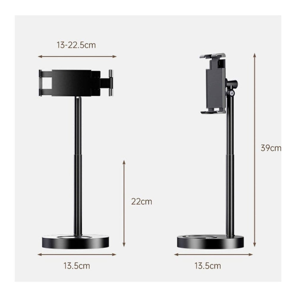 The Universal Adjustable Tablet Floor Stand offers hands-free convenience with a stable, modern design crafted from carbon steel and ABS. Ideal for home or work, it provides smooth adjustability and reliable support for a wide range of devices. With a height range of 22–39 cm and a clamping width of 13–22.5 cm, it easily fits tablets and smartphones from 4.7 to 17 inches. The solid 0.4 kg base ensures dependable stability, while the 360° rotating clamp lets you switch between portrait and landscape viewing with ease. Whether you’re watching movies, joining online meetings, following recipes, or streaming content, this stand delivers comfort, flexibility, and long-lasting durability.