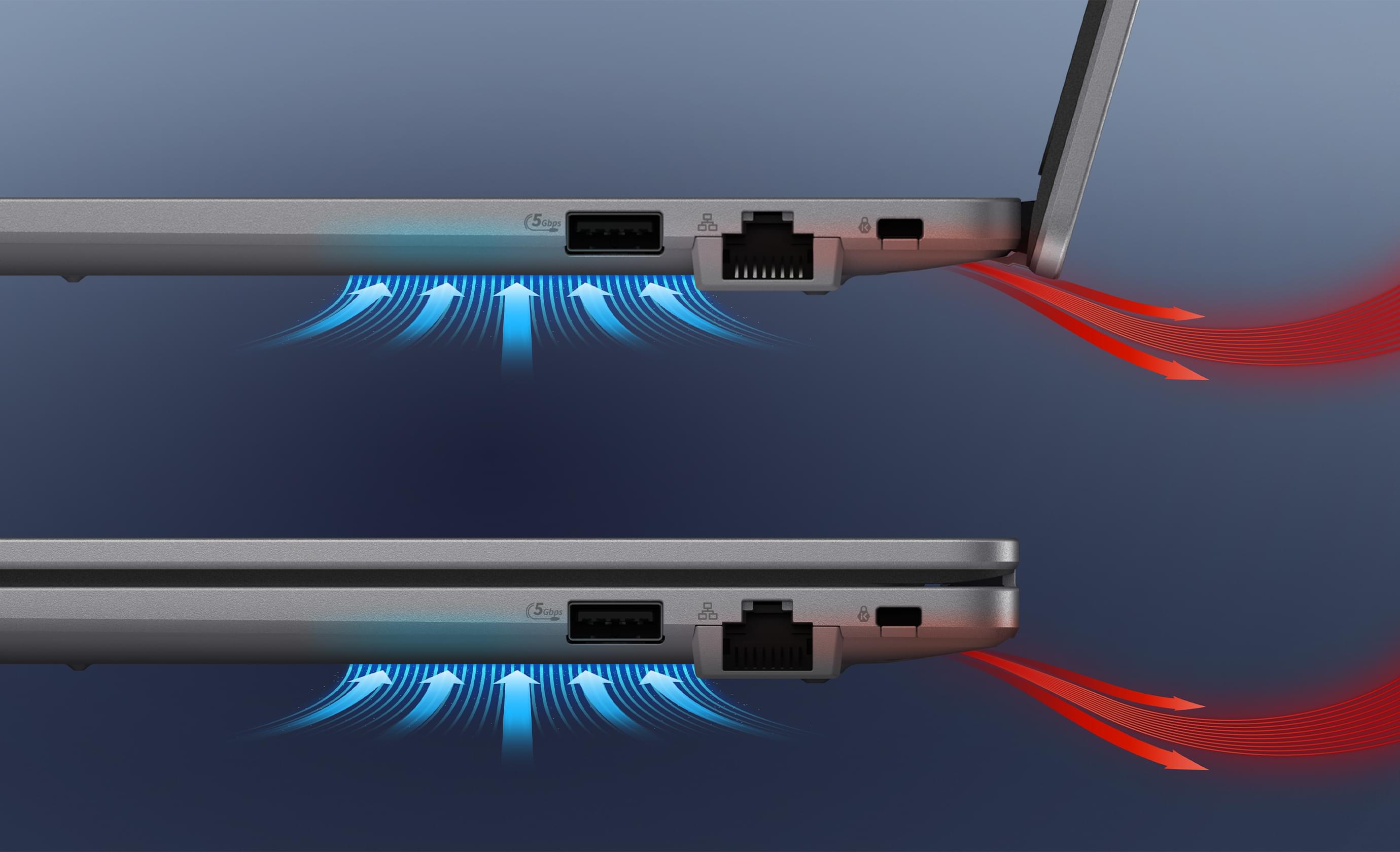ASUS ExpertBook P1 also features an enhanced cooling system that ensures consistent, optimal performance whether the lid is open or closed, guaranteeing peak efficiency even during extended use. Moreover, with this ExpertCool thermal solution, the heat is directed to the rear of the device, preventing hot air from affecting your hand when using a mouse.