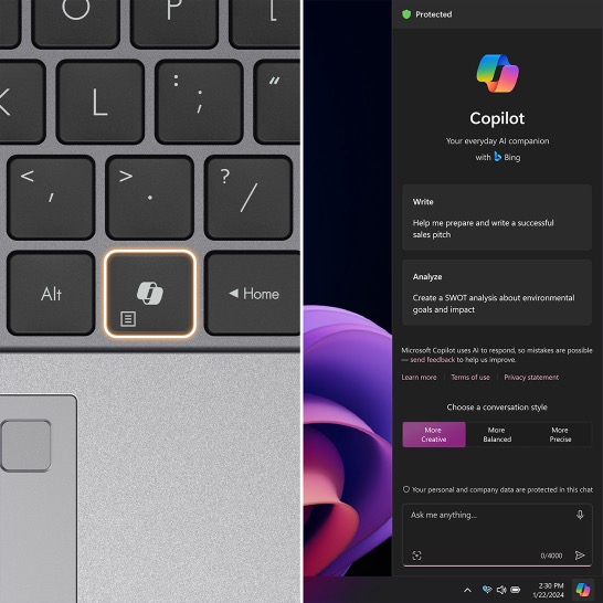 Copilot in Windows with commercial data protection is your AI assistant at work. Supercharge your productivity and achieve more with less time and effort using Copilot. Experience your everyday AI companion now with the dedicated Copilot key. Just one click for endless exploration.