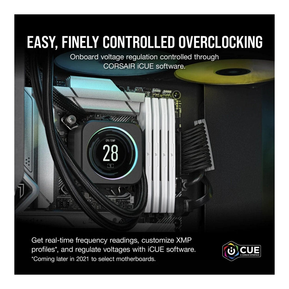 You have the power and the control. Built-in voltage regulation with iCUE software control makes for easier, finely-tuned output that provides more stable overclocking than ever.