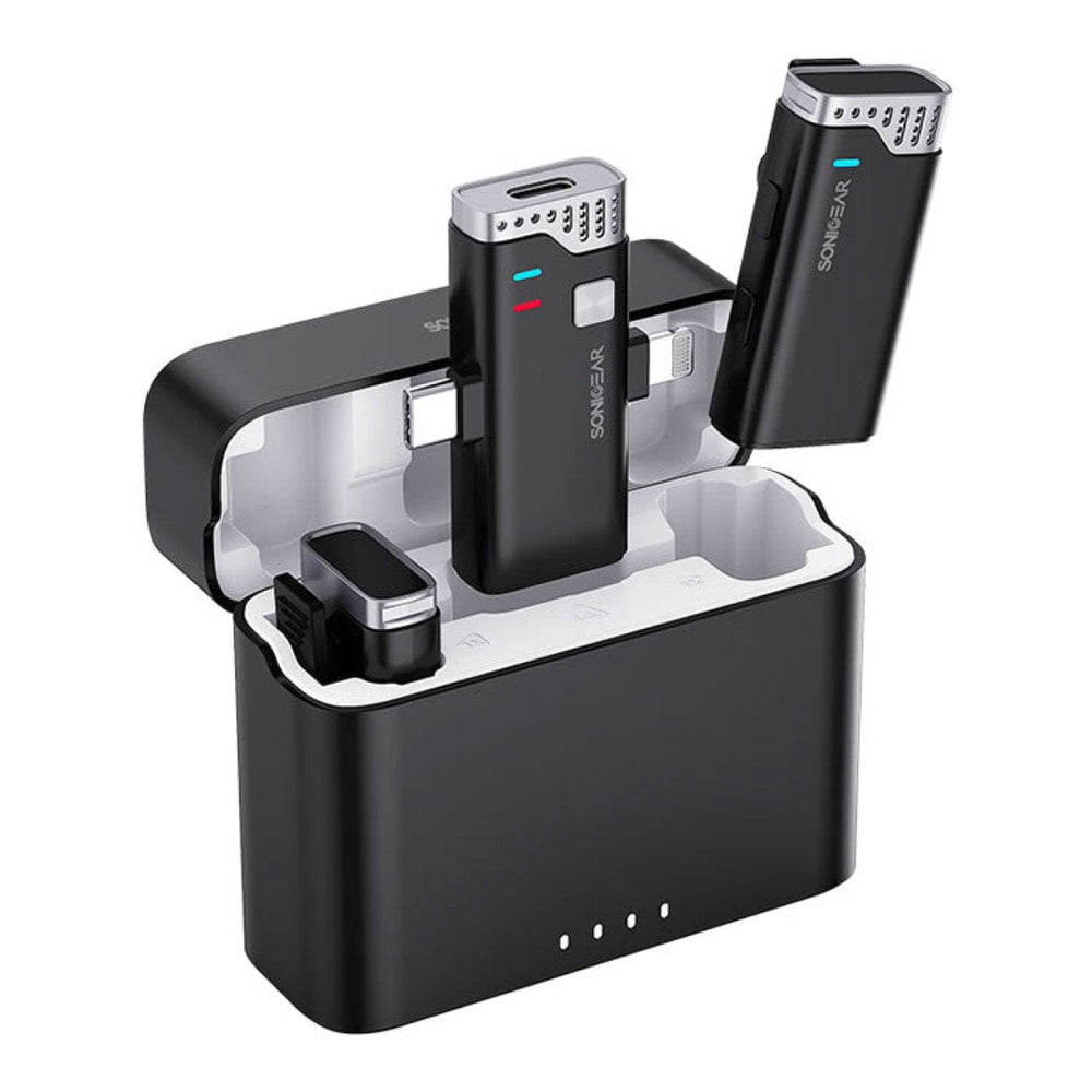 SonicGear WLM 3000 Duo Wireless Clip-on Microphone with Charging Case WLM3000DUOBLK