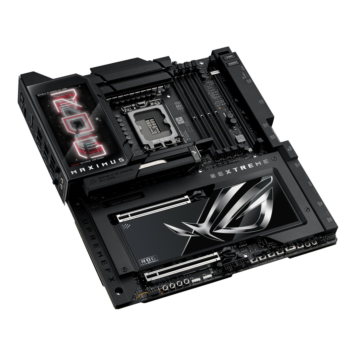 The ROG Maximus Z890 Extreme is the ultimate expression of cutting-edge motherboard technology and performance. Discover the upper limits of Intel® Core™ Ultra Series 2 processors, DDR5 modules, PCIe® 5.0 graphics cards, NVMe storage, USB connectivity, Thunderbolt™ functionality and more – all wrapped up in a sleek package featuring a full-color 5-inch long LCD screen that can deliver vibrant imagery or live system stats to suit your personal tastes