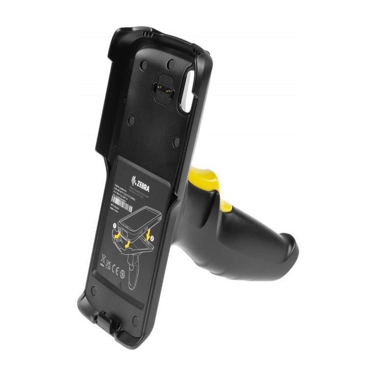 The Zebra Trigger Handle adds a gun-style handle with a scanning trigger to the device. It increases comfort when using the device in scan-intensive applications for extended periods of time.