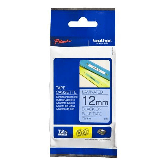 Brother TZe-531. Label colour: Black on blue, Tape type: TZe, Brand compatibility: Brother. Tape width: 1.2 cm, Tape length: 8 m, Quantity per pack: 1 pc(s). Tape size: 1.2 cm