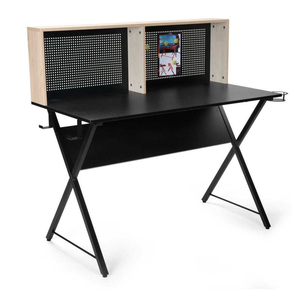 Includes 10pc Small Magnets, allowing you more vertical space for organization and reminders.Integrated cupholder and headphone hook, keeping all your necessities close by while gaming.1x Cable Management Port, helps route and conceal wires, keeping your work setup tidy.Display shelf provides more space for you to place your belongs and keep your work setup efficient.The adjustable feet help achieve prefect balance and stability on any surface, ensuring a wobble-free gaming set-up.
