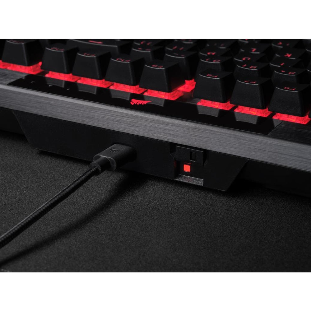 Keyboard form factor: Full-size (100%), Device interface: USB, Keyboard key switch: Mechanical, Keyboard layout: QWERTY, Keyboard number of keys: 104. Backlight type: RGB LED, Wrist rest. Recommended usage: Gaming. Product colour: Black