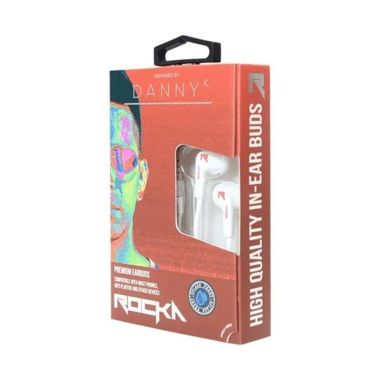 The Rocka Danny K Earphones have insulated sound for deep bass response with warm mid-range and crystal-clear treble. Lock-tight fit, splash-resistant buds with built-in mic.