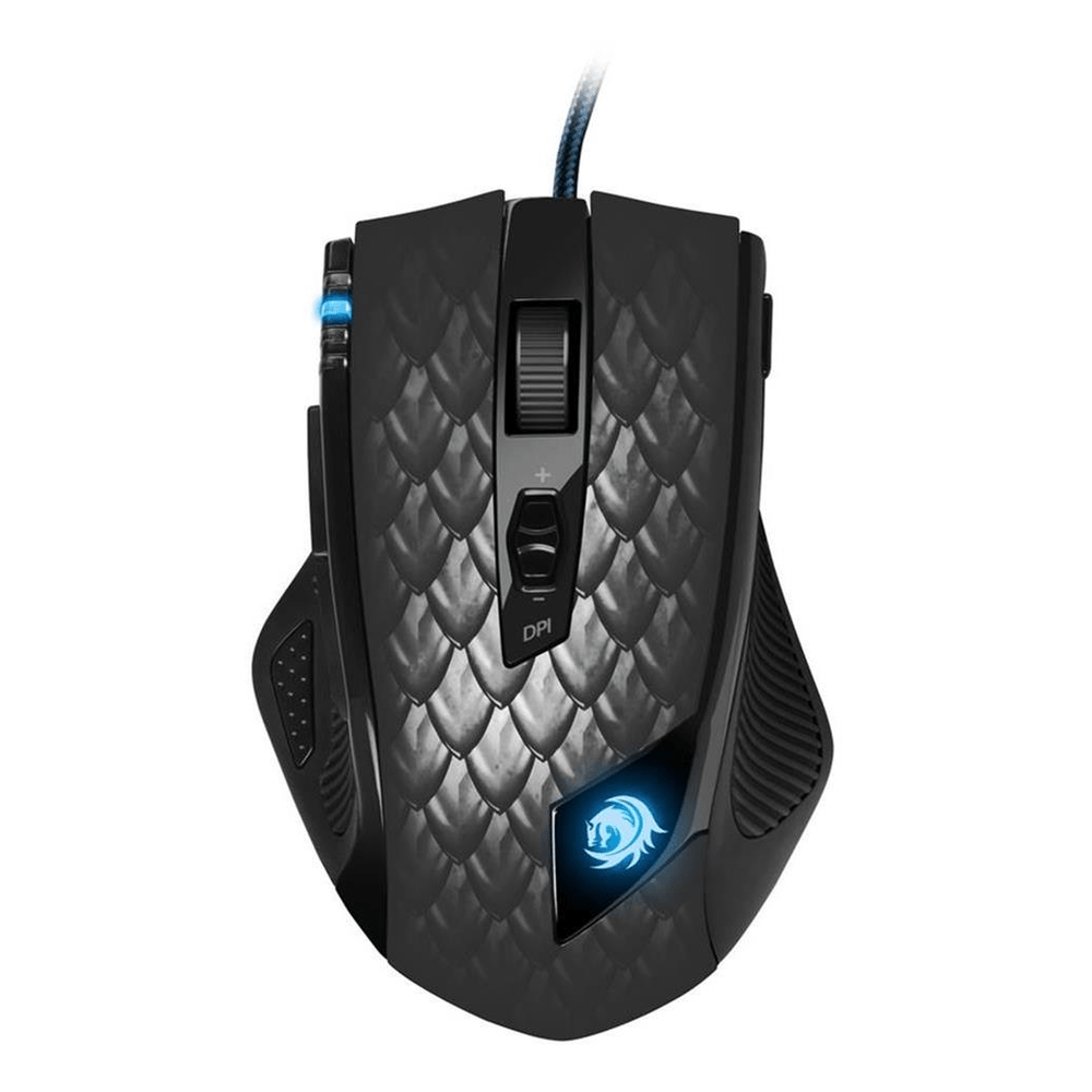 The Drakonia Black is the follow-up model to our popular green Drakonia. Like before, the Drakonia Black has eleven buttons and a 4-way scroll wheel, with each being freely programmable through the included configuration software to perform various different functions. An ADNS-9800 laser sensor from Avago operates under the gray dragon scales casing, with the current DPI setting in use indicated by a constantly illuminating LED. The SoftSkin surface of the Drakonia Black offers a soft grip and prevents perspiration build-up, ensuring the mouse fits perfectly in hand even during heated battles. Likewise, the ergonomic shape of the Drakonia Black is designed for stability and control: its outward curved rear offers more grip during very small and precise movements as well as a high-level of comfort during long gaming sessions. Therefore the Drakonia Black is aimed especially to a FPS Sniper and RTS/RPG gamers; the type of players who typically launch themselves into long battles and epic adventures. On the bottom of the Drakonia Black you will find six metal weights comprising of the Weight Tuning System, allowing the fighting weight of the mouse to be adjusted at any time.
