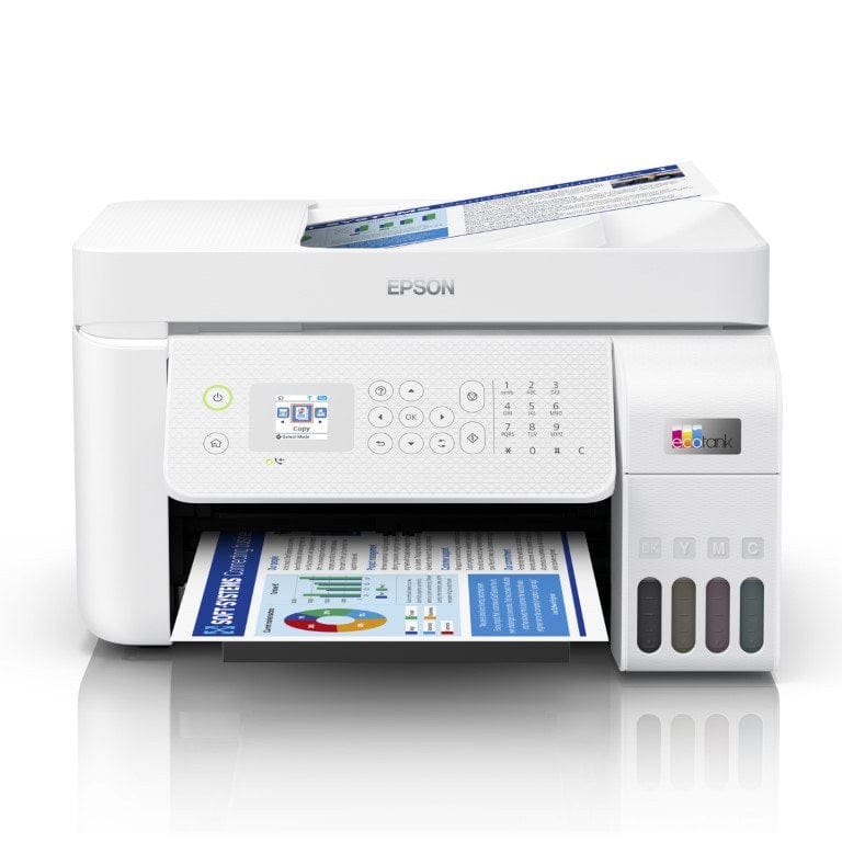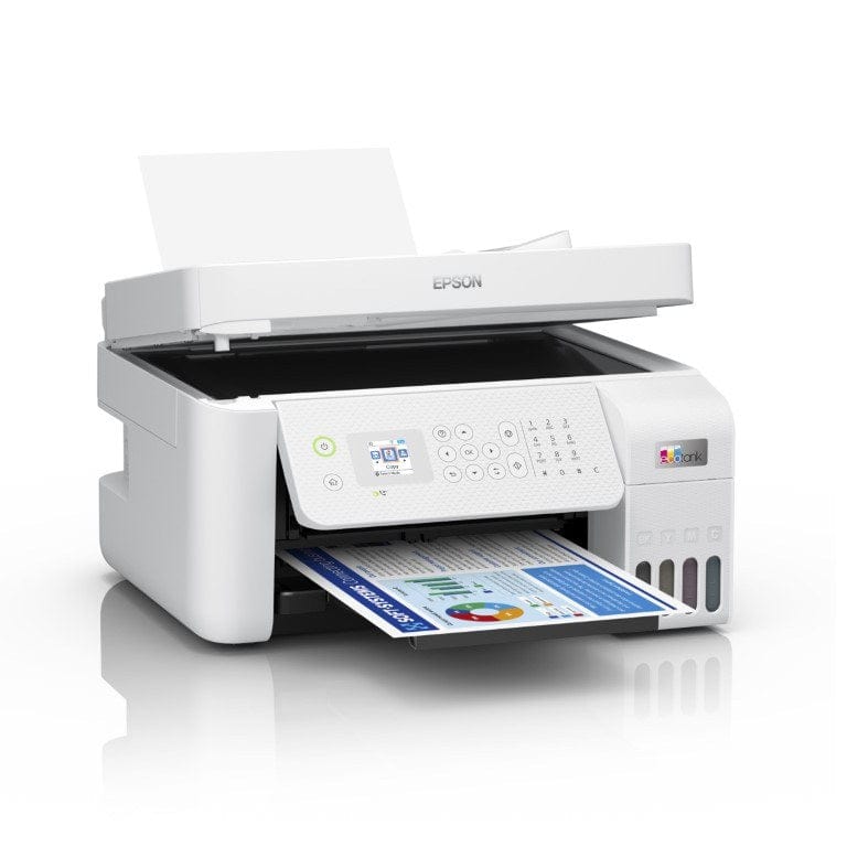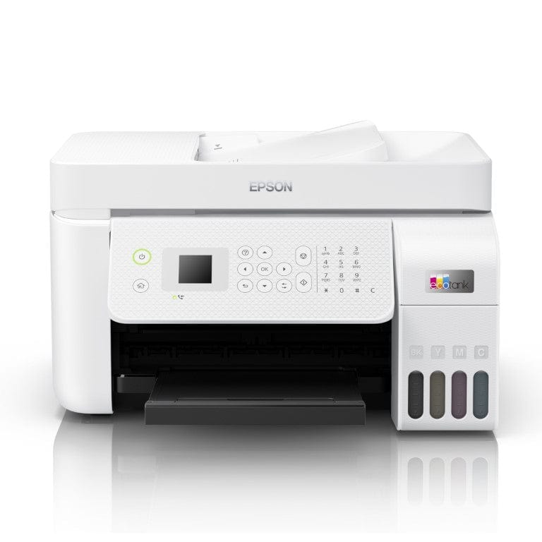 With no cartridges to replace, this is the perfect multifunction (print-scan-copy-fax) white printer with Wi-Fi Direct, Ethernet and a LCD screen for anyone looking for high-quality prints at an incredibly low cost per page. Featuring 30-page Automatic Document Feeder (ADF), 100-sheet rear paper tray, borderless photo printing (up to 10x15cm) and print speeds of up to 10 pages per minute, you can speed through a variety of tasks with ease.