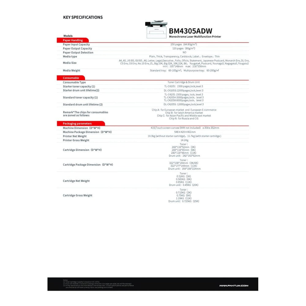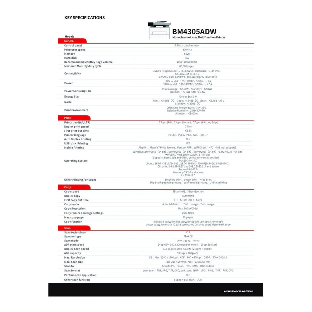 Pantum BM4305ADW A4 Multifunction Mono Laser Printer