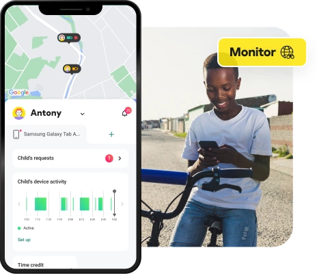 Know where your kids are 24/7, monitor their digital activity and screen time, and get alerts for worrying behaviour.
