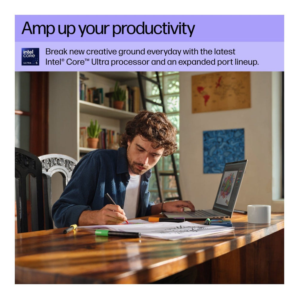 Amp your productivity with an Intel® Core Ultra Processor, HP Fast Charge, larger touchpad and expanded port lineup.