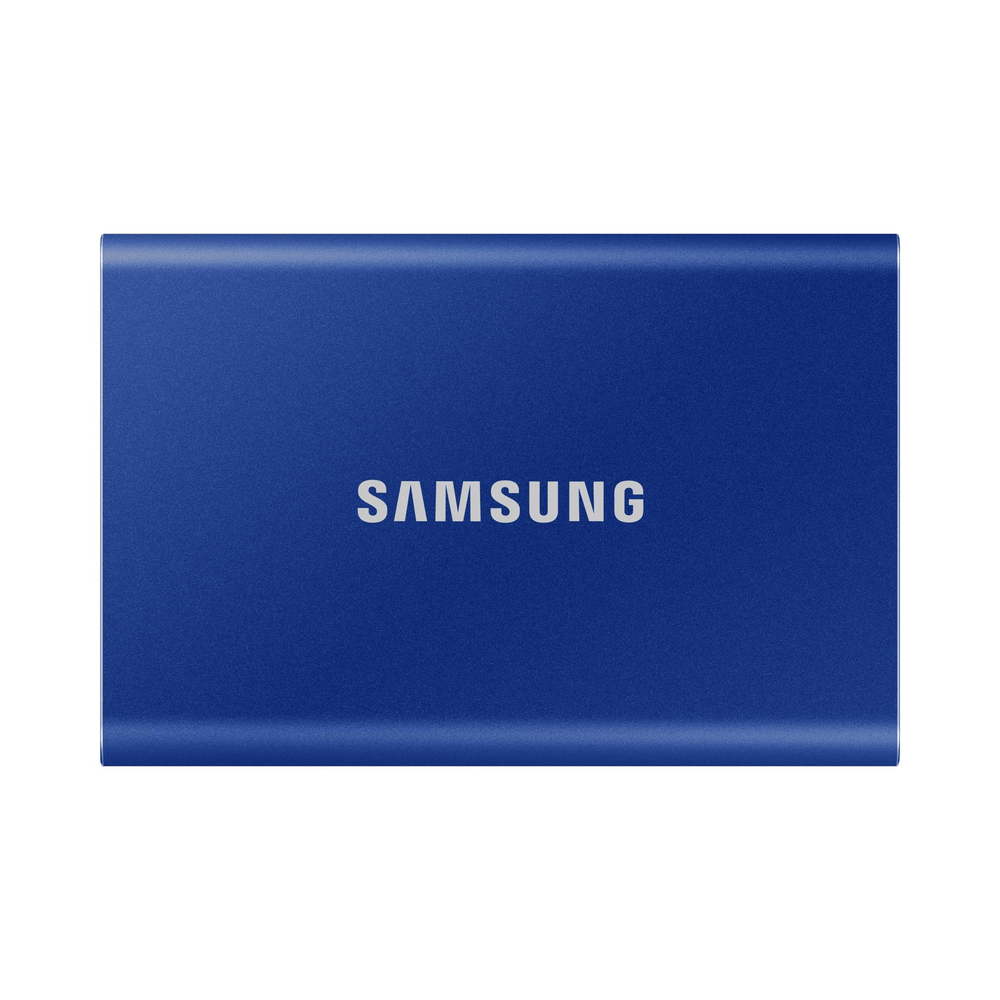 The new norm in external storage Light and pocket-sized, the Portable SSD T7 both delivers fast speeds and safeguards data for an easy way to store and transfer large files. Experience everyday high performance in your work and play with the T7. Transfer in a flash Transfer massive files within seconds with the incredible speed of USB 3.2 Gen 2 on the T7. The embedded PCIe NVMe technology facilitates sequential read/write speeds of up to 1,050/1,000 MB/s, respectively, making the T7 almost twice as fast as the previous T5 model. Built strong and secure SSD stands for Solid State Drive, which means it's built with no moving parts. The hardware can be secured with an AES 256-bit encrypted password and is encased in a sturdy metal body that keeps data intact from falls of up to 2 meters. Sophisticated thermal solution Use T7 without worrying about overheating. The T7's advanced thermal solution uses ePCM technology and the Dynamic Thermal Guard to withstand and control heat, so the compact SSD stays at an optimal temperature even at fast speeds. Sleek and compact style Pocket-sized and slim, the lightweight body comes standard on the T7. Roughly the size of a credit card and weighing in at 58 grams, the solid aluminum unibody construction fits comfortably in the palm of your hand. Find your best fit The T7 gives you a range of options so you can find your perfect match. Pick a color from classic black to striking blue and red, and choose from three capacities to fit what your lifestyle demands: 500GB, 1TB, or 2TB. Multi-device compatibility ccess your files anytime, anywhere. The T7 is compatible with PC, Mac, Android devices, gaming consoles, an more. Included in the box are USB Type C-to-C and Type C-to-A cables for added convenience. Management software The T7 comes embedded with upgraded software for PCs and Macs to help you set up a password and get the latest firmware updates. You can also download the mobile app for Android smartphones and tablets. World's No. 1 Flash Memory Experience the superior performance and reliability that you can only get from the world's number one brand forflash memory since 2002. All firmware and components,including Samsung's world-renowned DRAM and NAND, are produced in-house, allowing end-to-end integration for quality you can trust
