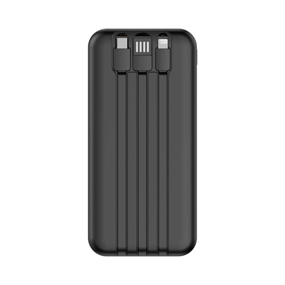 The power bank is equipped with built-in charging cables, including both Type-C and Lightning connectors. These cables provide convenient charging options for a wide range of devices, eliminating the need to carry extra cables with you.