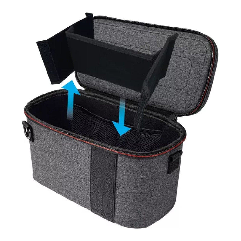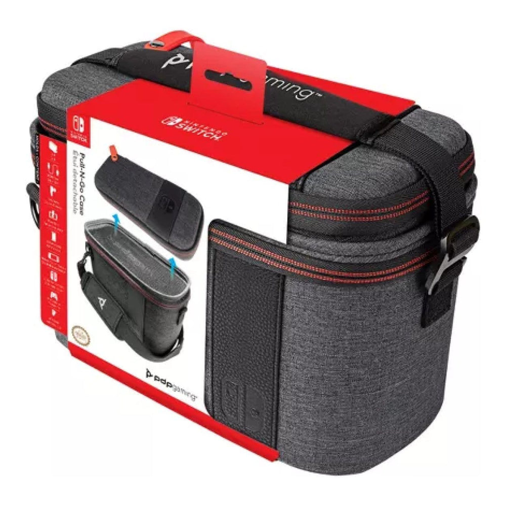 The Elite Edition Pull-N-Go Case is 2-in-1 for more fun! Pack your entire system inside or pull off the attached Slim Travel Case for on-the-go gaming sessions. The compact, yet functional design makes this carrying case the ultimate travel companion for any Nintendo Switch gamer. The Pull-N-Go Case fits a Nintendo Switch, Switch Lite, or Switch OLED Model, the console dock, Pro Controllers, AC adapter, HDMI cords, extra Joy-Con controllers, a power bank, game cards, and other small accessories. Protect and play with the top Slim Travel Case featuring a built-in console stand for on-the-go gaming. Customize the case with the interchangeable accessory dividers so you can store what you need, how you need it. The semi-hard shell construction makes it durable and lightweight, even with all your gaming gear inside!
