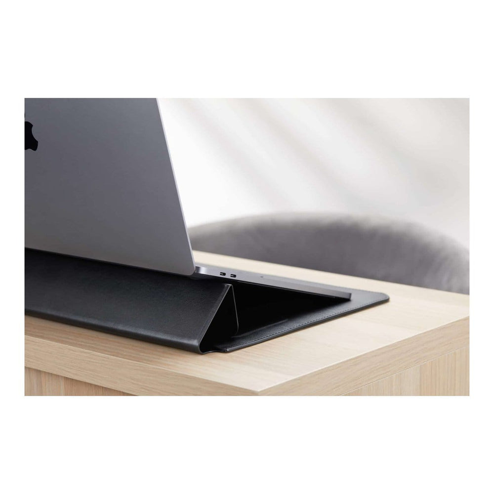 The sleeve flips up, transforming into an ergonomic MacBook stand, providing you with a pleasant 15-degree typing and viewing experience no matter where you are.