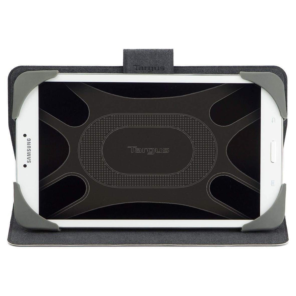Targus SafeFit Universal Rotating Tablet Case is designed to protect 7-8” devices. A multi-fit tablet case with a stretchy, shock-absorbing silicone system grips your device on all four corners and secures it safely inside. 360° rotating design offers hands-free portrait and landscape viewing. Durable water resistant cover is secured with a reassuring magnetic closure and has a soft interior to protect the device screen. Available in a range of colours.