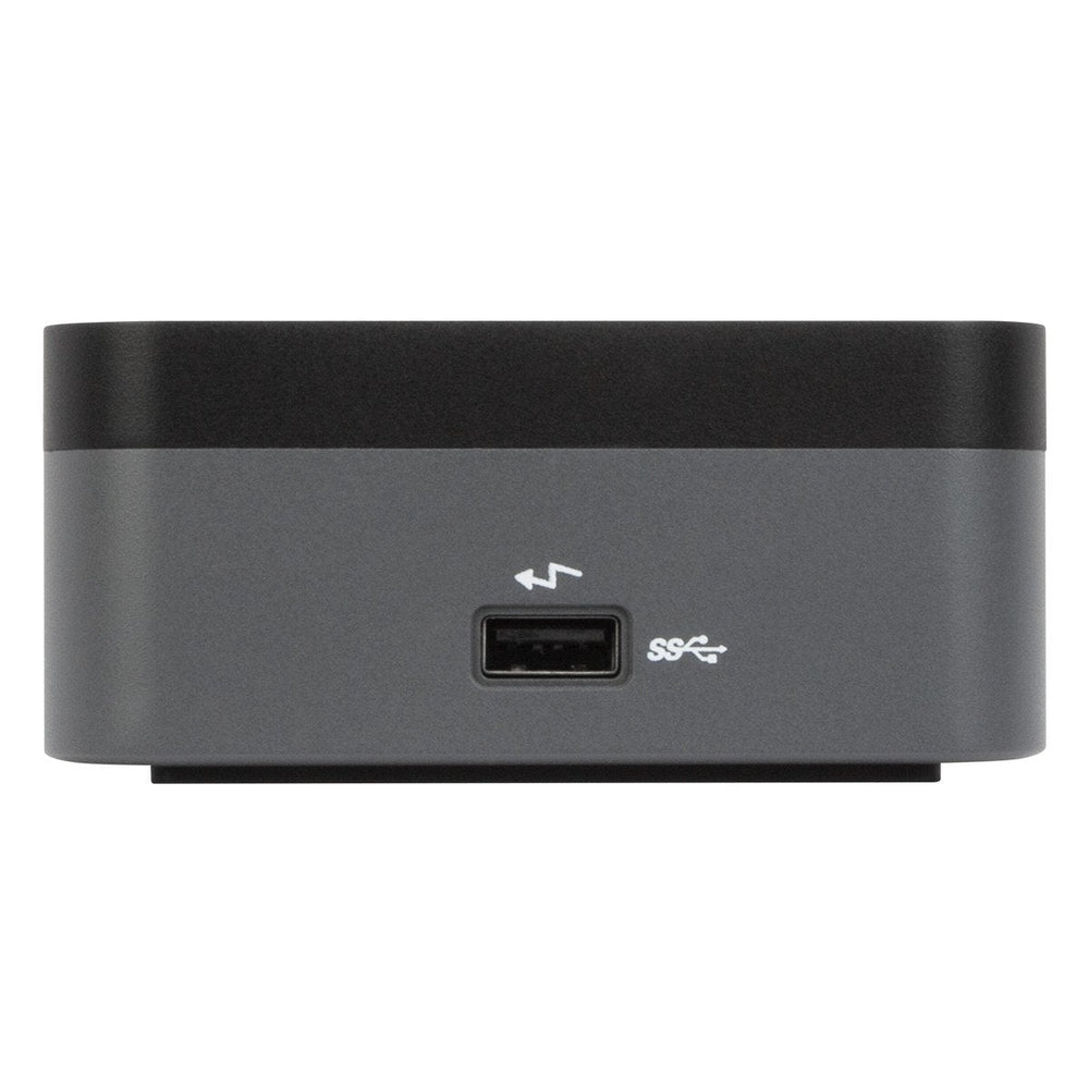 This sleek dock helps reduce clutter by providing the ease of a single connection for key peripherals like your mouse, keyboard, and more. Its rubberized, padded bottom protects against scratches, while the VESA bracket mounting provision allows for use of the Targus VESA Mount Bracket (ACX003GLZ – sold separately) to hold your dock behind your display for even greater space savings. Your most advanced configurations become easy with compatibility across virtually any laptop and most standard peripherals including Thunderbolt 3™, Display Port Alt-Mode, and USB 3.0, 3.1, and Type-C devices. Charging tips and a USB-C to USB-A adapter are included making this dock compatible with a variety of major laptop brands.