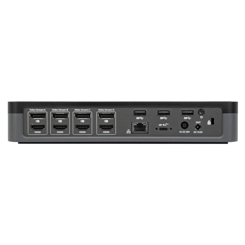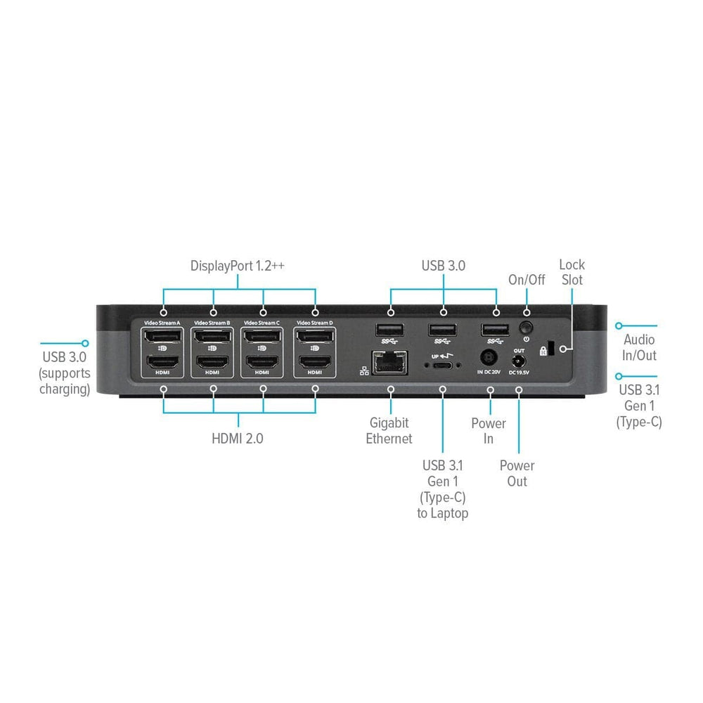 Your workstation has never been more powerful with a high-performance quad-monitor dock that supports full 4K (3840 x 2160 p60) resolution or DisplayPort (3840 x 2160 p60) on all four displays as well as viewing modes for two and three monitors. The eight available video out ports allows you to decide between HDMI or DP++ display options to ensure compatibility with your configuration.