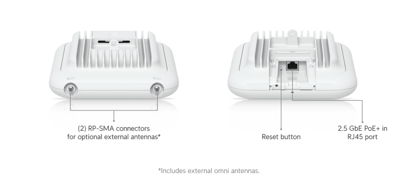 All-weather IP67 WiFi 7 AP with 6 spatial streams, extended-range AFC 6 GHz support, integrated directional super antenna, and articulation mounting bracket.