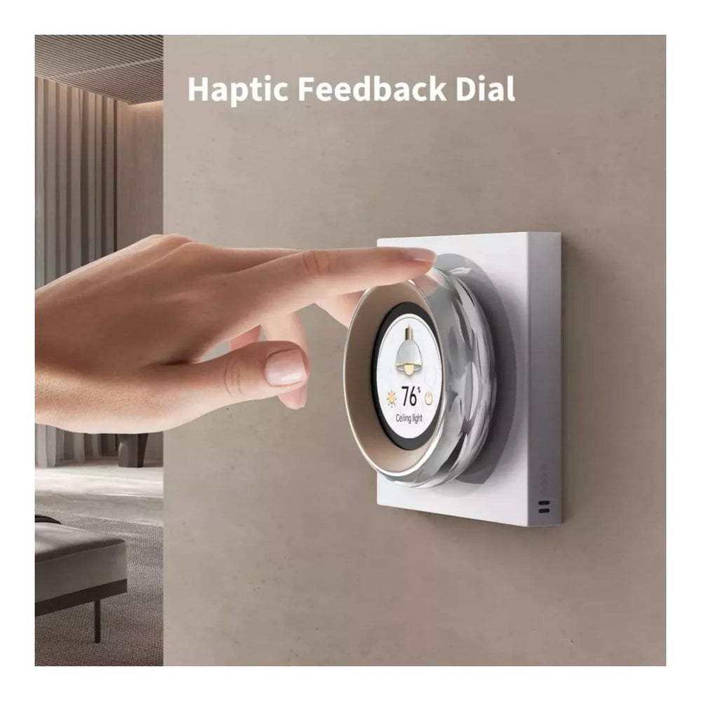 The Aqara Touchscreen Dial V1 DS-K01D is a smart wall switch combining a haptic rotary dial and a 1.32-inch touchscreen for precise control over your smart home environment. It integrates two relay switches and six wireless switches to manage multiple Aqara devices. Users can adjust settings by sliding, clicking, or rotating the dial, receiving tactile and audible feedback for accurate adjustments. The switch includes built-in sensors for monitoring indoor temperature and humidity, enabling automated climate control. A proximity sensor activates the screen on approach, conserving energy and reducing light pollution. The customizable screen can display time, weather, and device status. Connectivity is provided through dual-band Wi-Fi, with support for Apple HomeKit, Home Assistant, Alexa, and Google Home ecosystems.