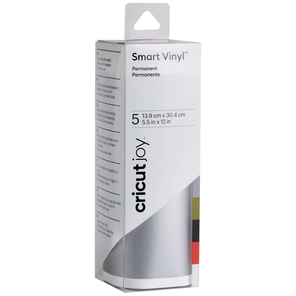 sheets 13.9 cm x 30.4 cm (5.5 in x 12 in) in silver, gold, black, tomato red, whiteWithout a cutting mat - simply charge and start!Super to create individual stickers for the outdoors, water bottles, letter boxes and morePermanent adhesive has a life of up to 3 yearsEasily removable, can be applied effortlesslyWater and light resistantGreat for outdoor projectsFor Cricut Joy