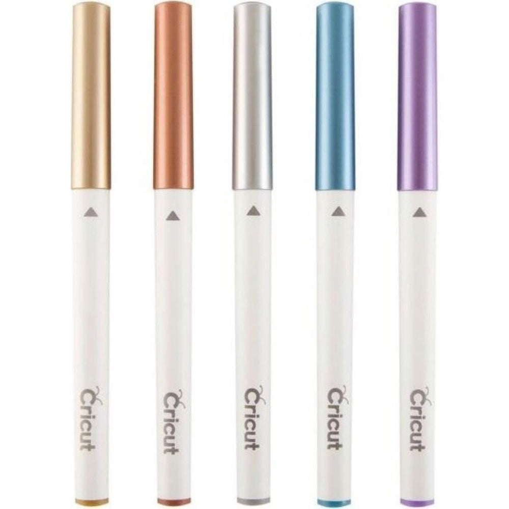 - Cricut Explore Metallic Pen Set includes five pens, one each in Gold, Silver, Copper, Blue, and Violet