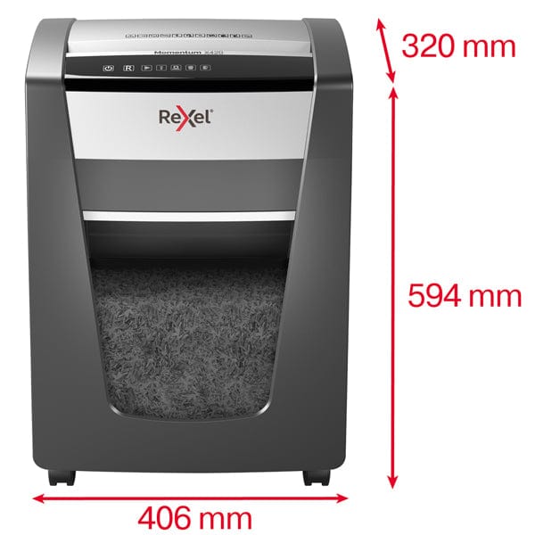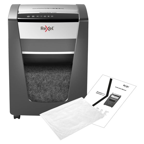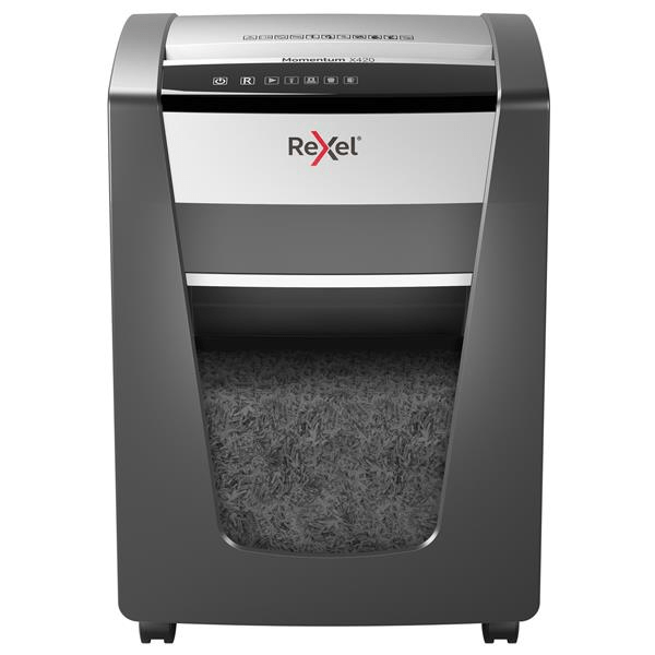 1 x Rexel Momentum X420 Cross Cut Paper Shredder, Dimensions (H x W x D): 59.4 x 40.6 x 32 cm, Weight: 22 kg, 2104578EU