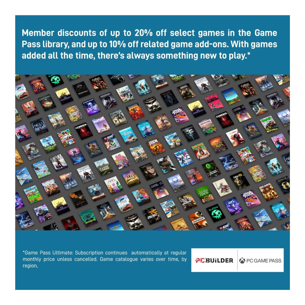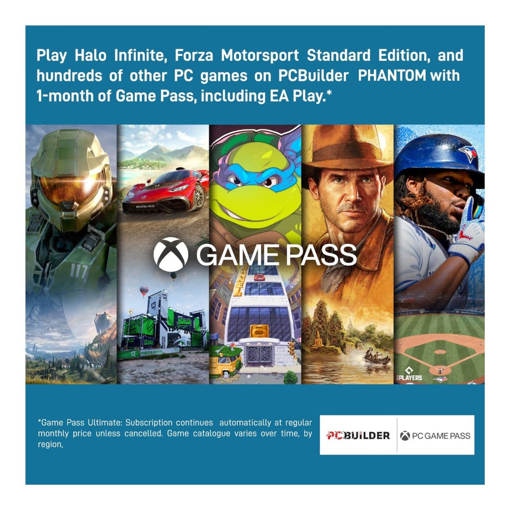 The PCBuilder PHANTOM Windows 11 Gaming PC also includes one month of PC Game Pass including EA Play. Play over 100 high-quality PC games, in various genres such as Halo Infinite, Forza Horizon 5, and Minecraft on your new gaming rig. With new games added all the time, there’s always something new to play from day one.